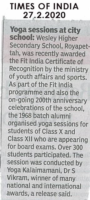 Yoga Sessions organized by School Alumni for the students appearing for Public Examinations